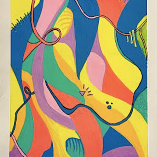 "This represents my bunny's moods. The background is dark because he's most active at dusk and dawn. The strokes show movement. The bunny is painted in vibrant colors to represent joy and excitement.”